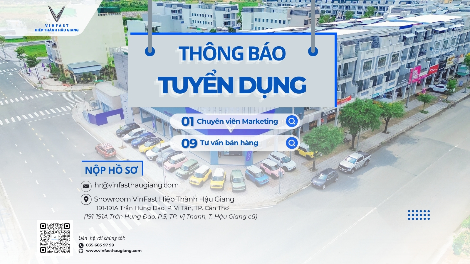 VinFast Hiệp Thành Hậu Giang là nhà phân phối chính thức các dòng sản phẩm ô tô điện VinFast. Với nhu cầu mở rộng hoạt động kinh doanh, chúng tôi hiện đang tìm kiếm những ứng viên tài năng để ...