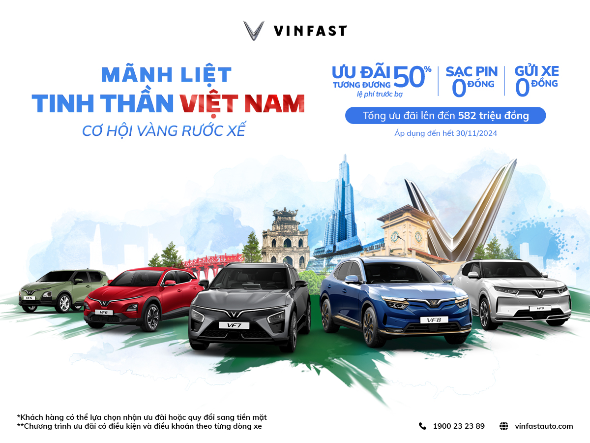 Khách hàng đặt cọc các mẫu ô tô điện VinFast gồm VF 5, VF 6, VF 7, VF 8, VF 9 từ 20/08/2024 đến 30/11/2024 sẽ nhận được nhiều ưu đãi lớn. Các món quà bao gồm ưu đãi tương đương 50% lệ phí trước ...